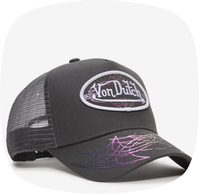 Transport yourself to the early 2000s with this iconic Von Dutch trucker hat. Featuring bold graphics and nostalgic pop colors, this adjustable cap delivers retro flair and edgy design perfect for making statement streetwear looks.